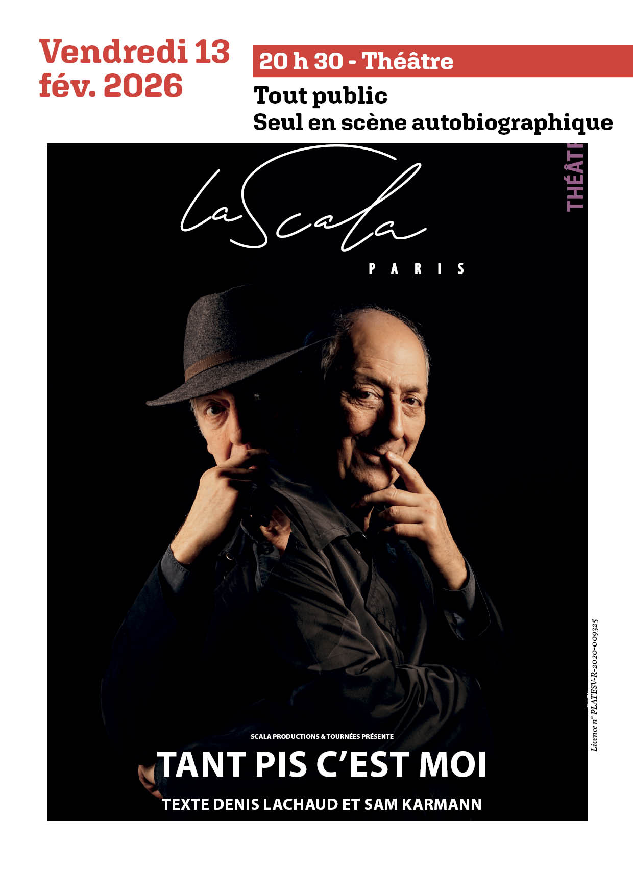 THÉÂTRE Vendredi 13 février à 20h30 - espace culturel A. de Saint-Exupéry Une vie dessinée par un secret de famille... Seul en scène, Sam Karmann revit le parcours romanesque de sa mère, entre exils, séparations, secrets et transmission. De l’Italie à l’Égypte post-coloniale jusqu’à la France d’aujourd’hui, il interroge la construction de son identité, de sa vocation d’artiste. Lui qui pensait être devenu acteur par hasard… Un voyage intime et universel, qui résonne en chacun de nous. Sam Karmann se raconte, jusqu’à lever le voile sur un secret qui aura déterminé sa vie entière. Avertissement : ce spectacle est déconseillé aux moins de 14 ans. Pour réserver : Sam Karman, Tant pis c'est moi | 13 Février 2026 |