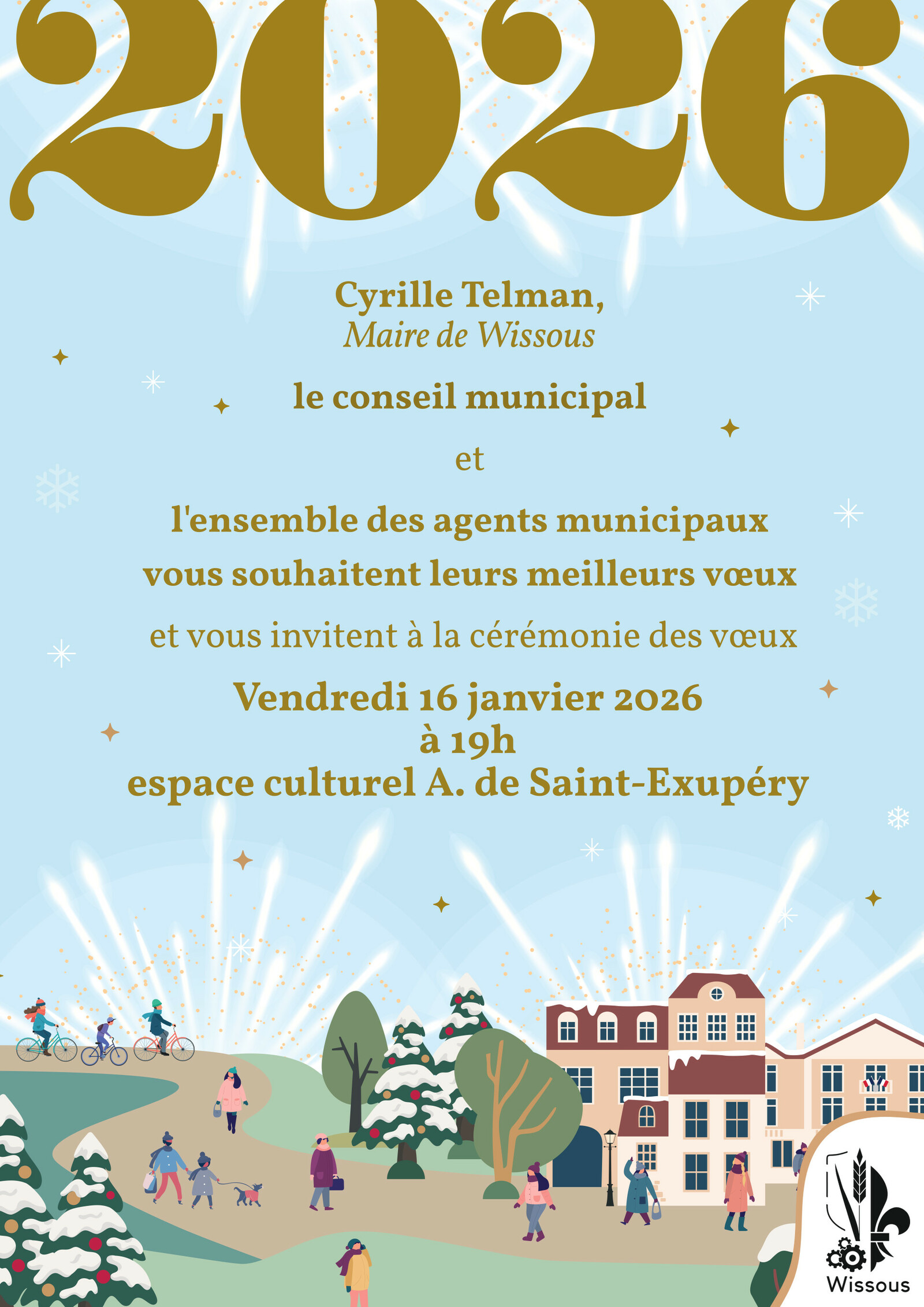 Cyrille Telman, le conseil municipal et l’ensemble des agents municipaux vous adressent leurs meilleurs vœux pour cette nouvelle année et vous donnent rendez-vous pour la cérémonie des vœux :