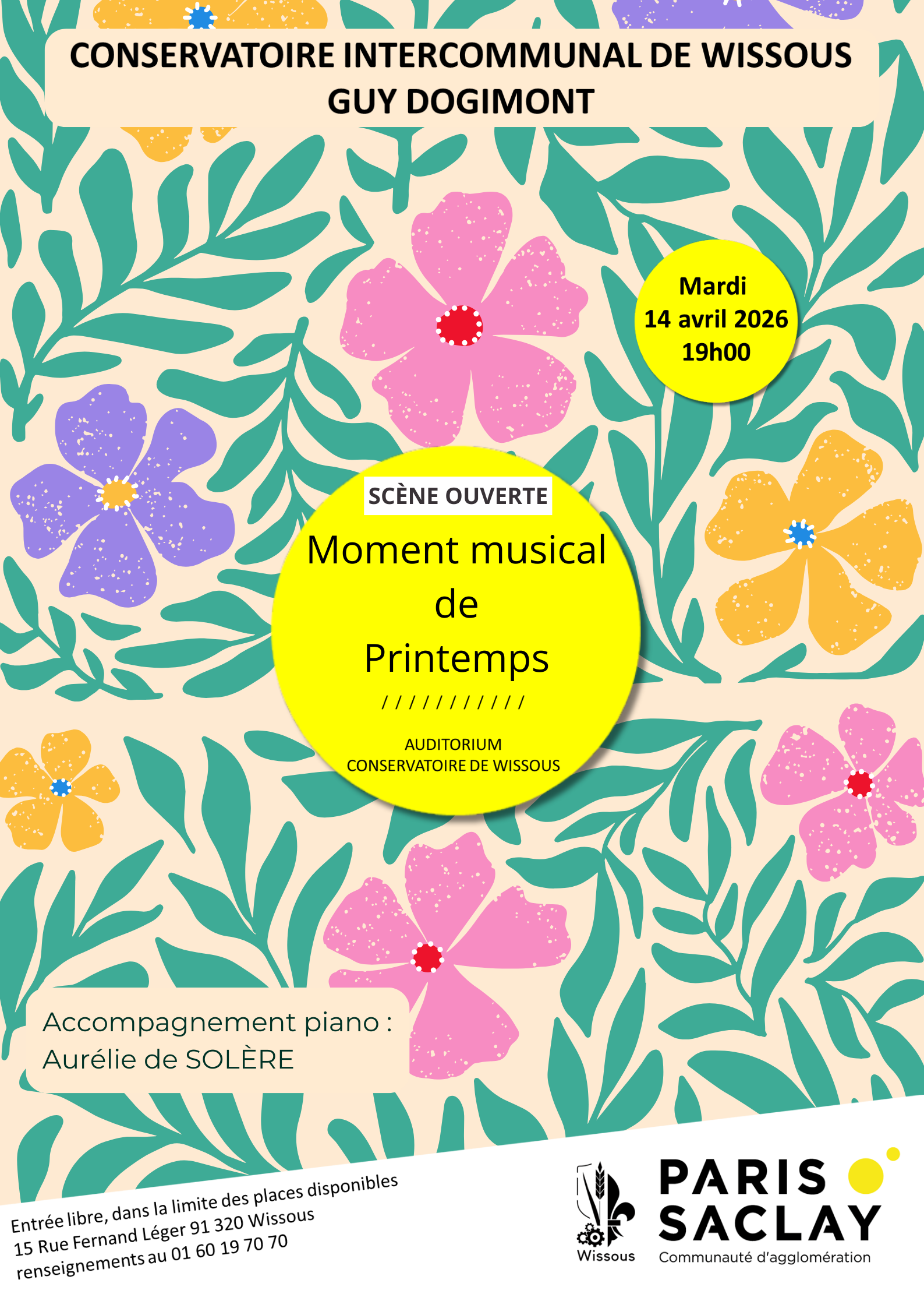Entrée libre dans la limite des places disponibles 01 60 19 70 70 / conservatoire.wissous@paris-saclay.com