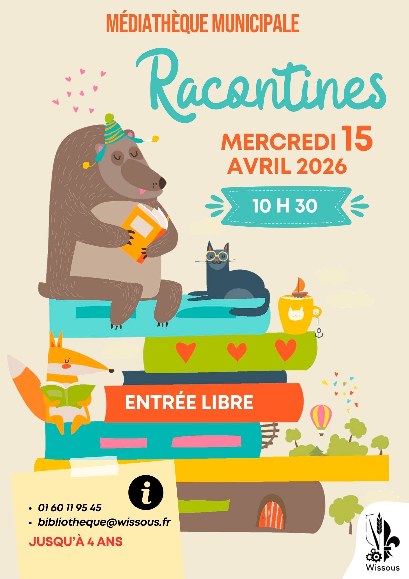 Mercredi 15 avril 2026 - 10h30 Médiathèque municipale Entrée libre - jusqu'à 4 ans