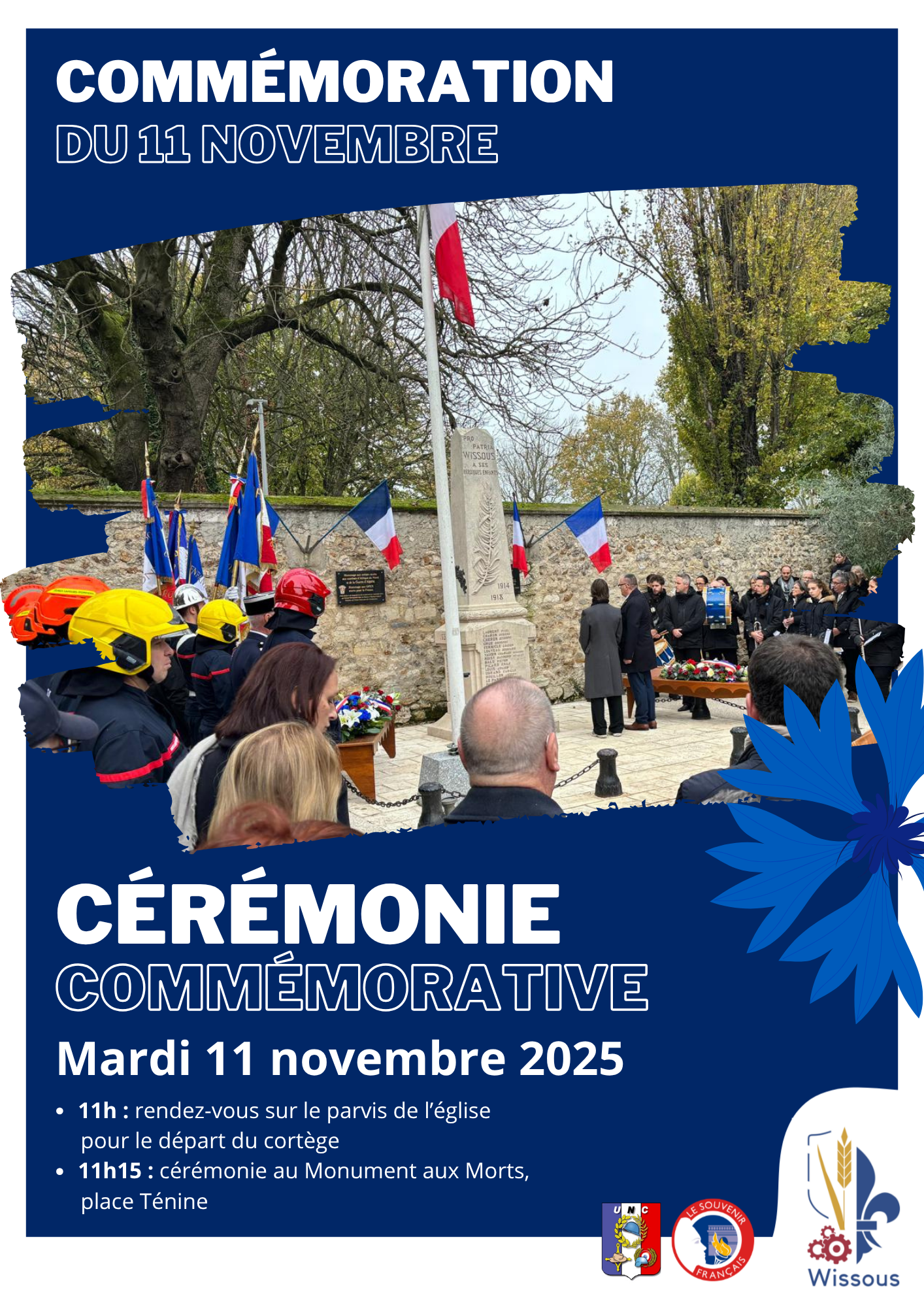 La Ville vous invite à la commémoration en hommage aux soldats morts pour la France, le mardi 11 novembre 2025. 11h : rendez-vous sur le parvis de l’église pour le départ du cortège 11h15 : commémoration au Monument aux Morts, place Ténine Avec la participation des porte-drapeaux, de l’Harmonie municipale, des Sapeurs-pompiers et de la Police municipale. La commémoration sera suivie d’un verre de l’amitié en salle des fêtes de la Mairie. |