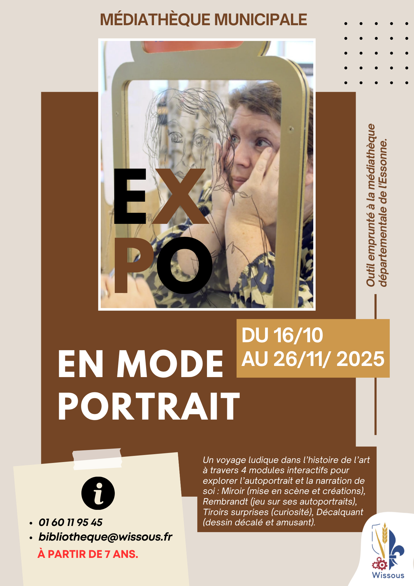 Du 16 octobre au 26 novembre 2025 à la médiathèque municipaleUn voyage ludique dans l’histoire de l’art à travers 4 modules interactifs pour explorer l’autoportrait et la narration de soi : Miroir (mise en scène et créations), Rembrandt (jeu sur ses autoportraits), Tiroirs surprises (curiosité), Décalquant (dessin décalé et amusant). À partir de 7 ans. |